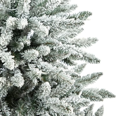 5’ Flocked North Carolina Fir Christmas Tree with 350 Warm White Lights and 1247 Bendable Branches
