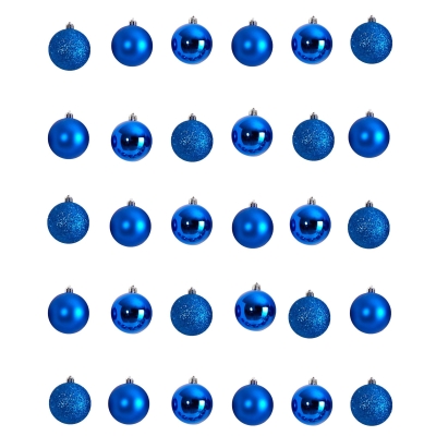 Holiday Christmas 30 Count 2.5” Shatterproof Ornament Set with Re-Useable Storage Container