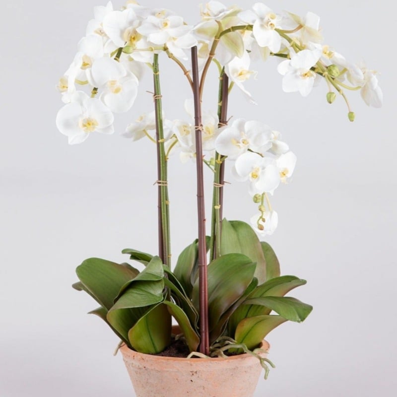 Potted Faux White Orchid Arrangement